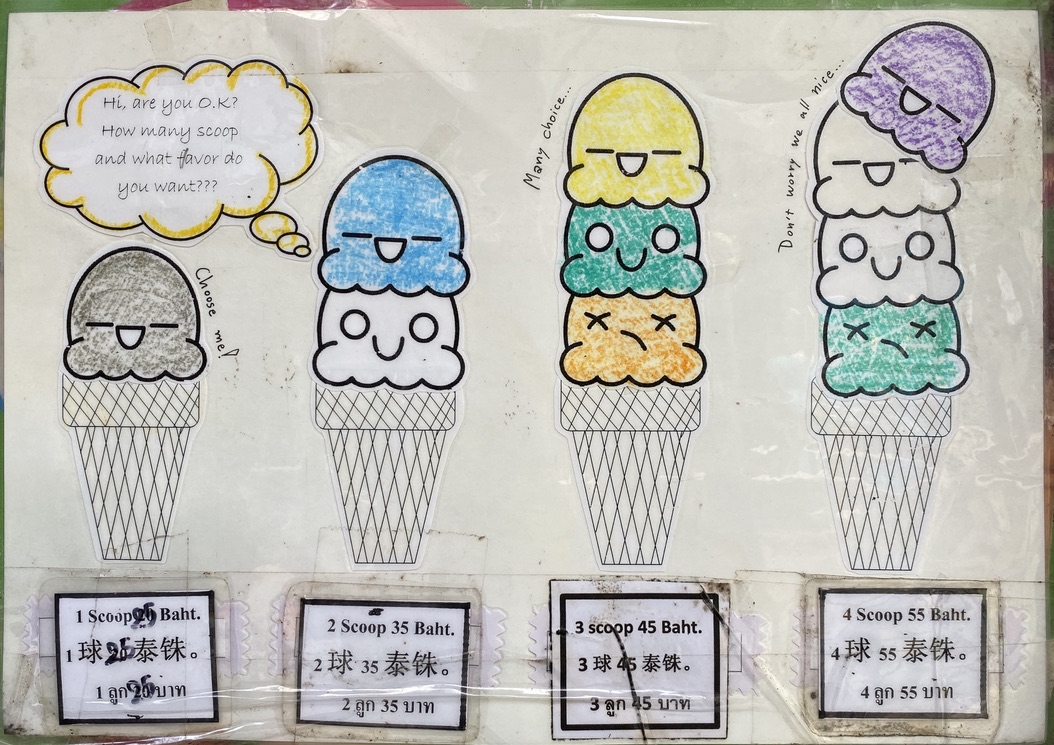 Il était écrit « What favor do you want? » (au lieu de flavor, ou flavour mais ça a été corrigé) Si le gars comprenait un peu plus l’anglais, j’aurais pu lui faire des jokes et lui dire que la faveur que je veux c’est qu’il me fasse un cornet 3 boules, mais c’est sûr que ça va finir par un moment désagréable à la place.