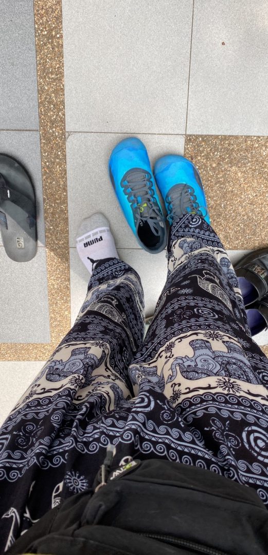 Avant d’entrer dans le temple, on enlève ses souliers! Les miens, bleus flash, sont faciles à retrouver en sortant: