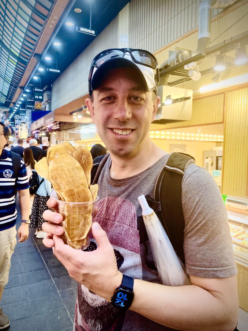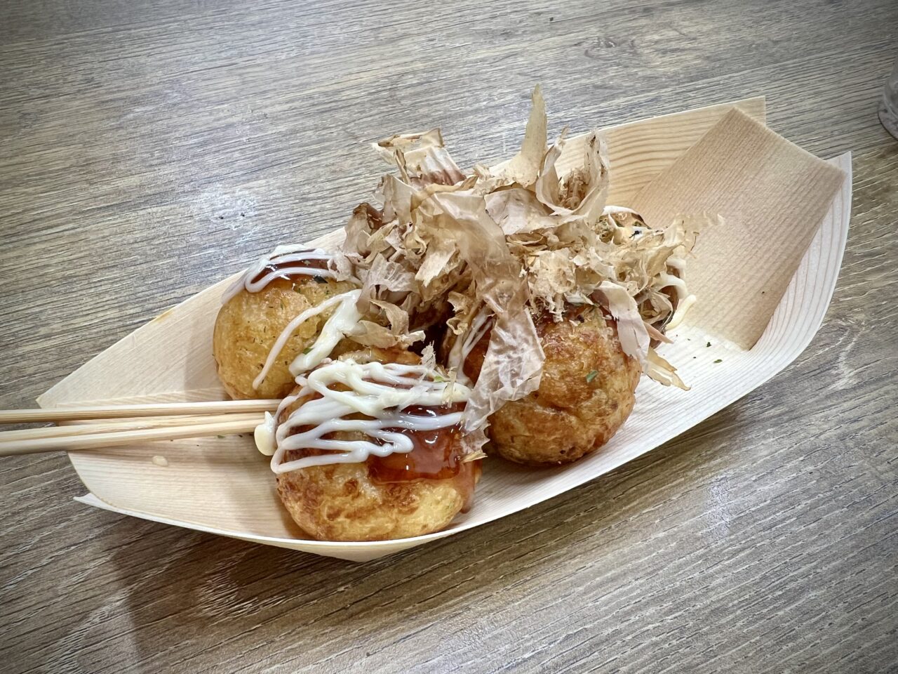 Sinon, il y a les takoyaki, c’est des boulettes de poulpe BRÛLANTES à l’intérieur. Une chance que le guide nous a dit que tous les touristes se brûlaient, comme ça mon palais sera intact ce soir.