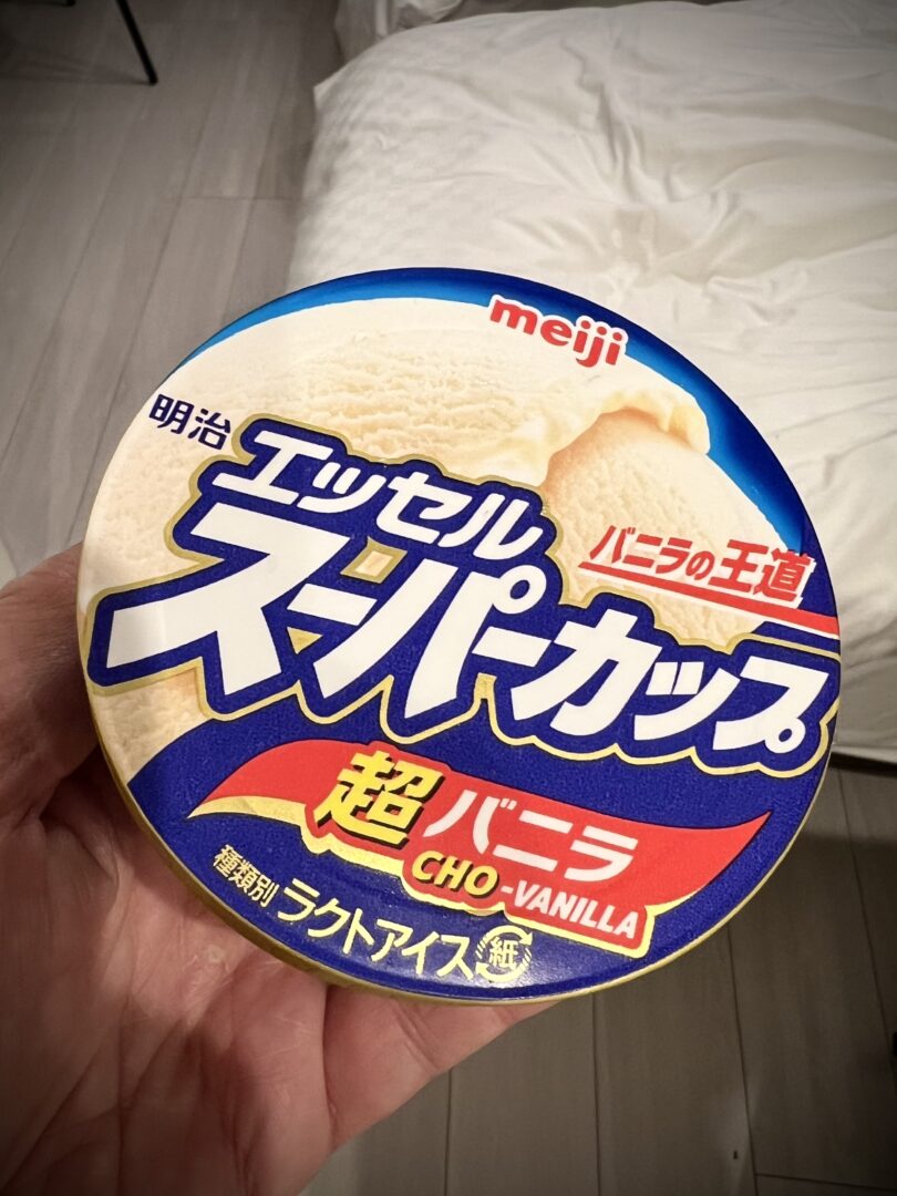 On est allé au Lawson (un autre genre de couche-tard) et j’ai pris cette crème glacée à la vanille:
