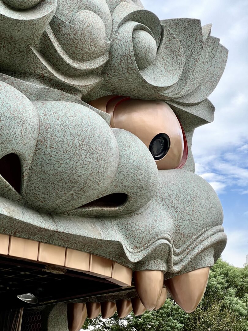 Sur wikipedia, ça dit que cette grosse structure de 10 x 11 x 12 mètres en forme de lion serait peut-être inspirée des styles de temples à Taiwan.