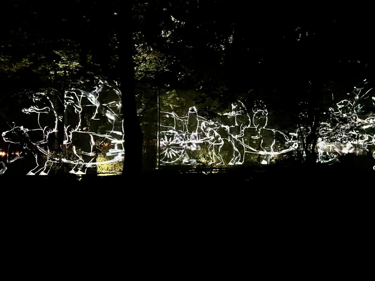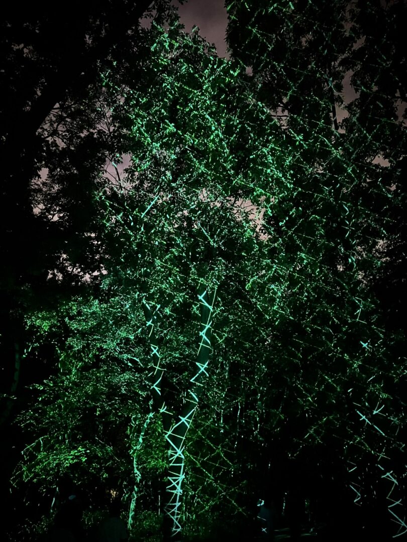 Des gens de lasers qui n’étaient pas des lasers, projetés sur des arbres: