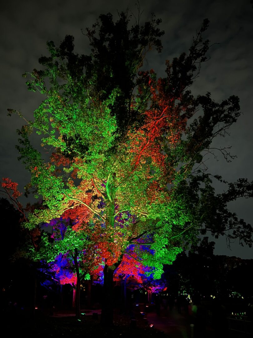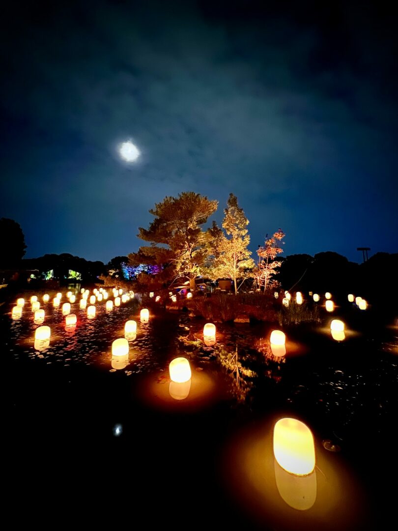 On n’avait rien de prévu, alors on a cherché un peu et Sarah a trouvé que teamLab (le même groupe qui a fait le musée d’art numérique) a un truc extérieur dans un jardin botanique. C’est 20$ par personne, on a réservé (c’est à 20h30).