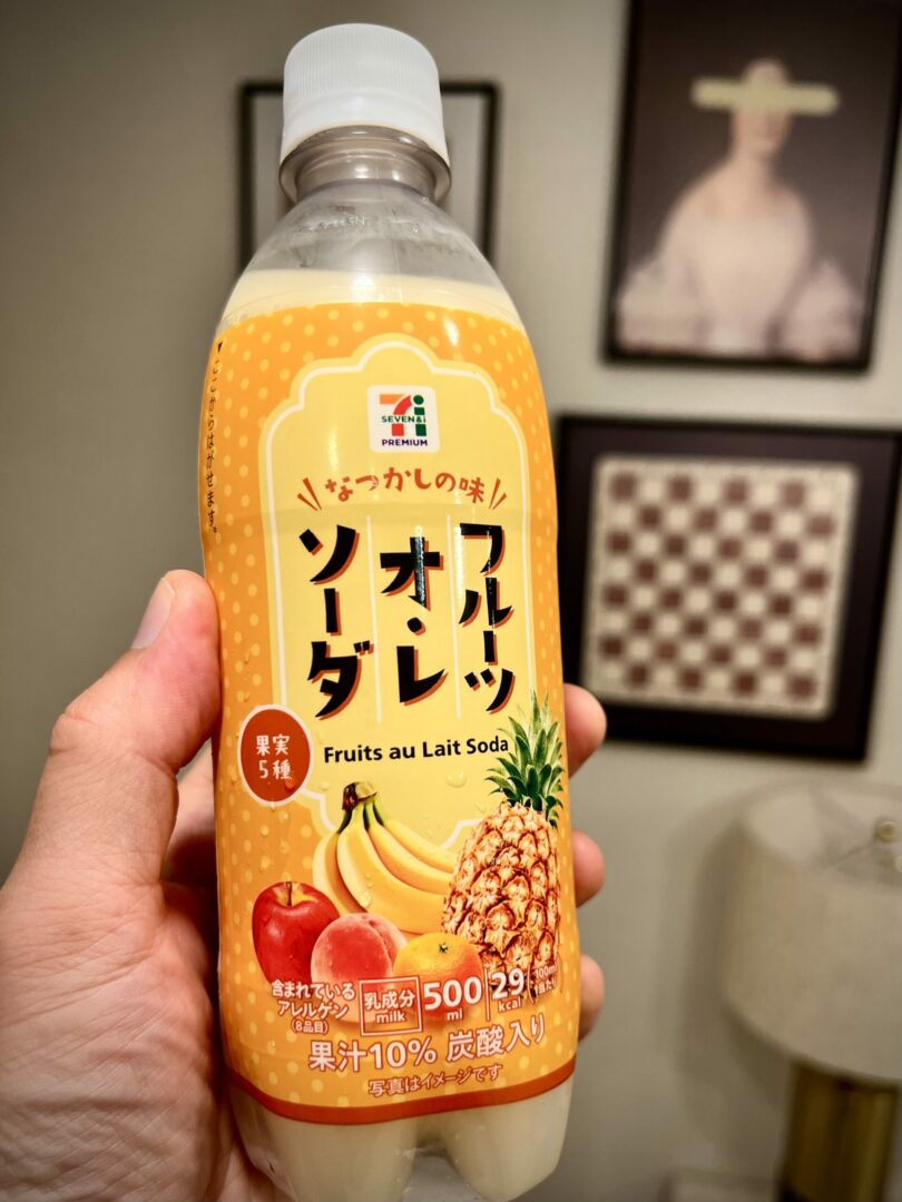 Et j’ai pas pu m’empêcher d’acheter ce « Fruits au Lait Soda ». Ça goûte un peu chimique, mais un peu ce que ça dit.