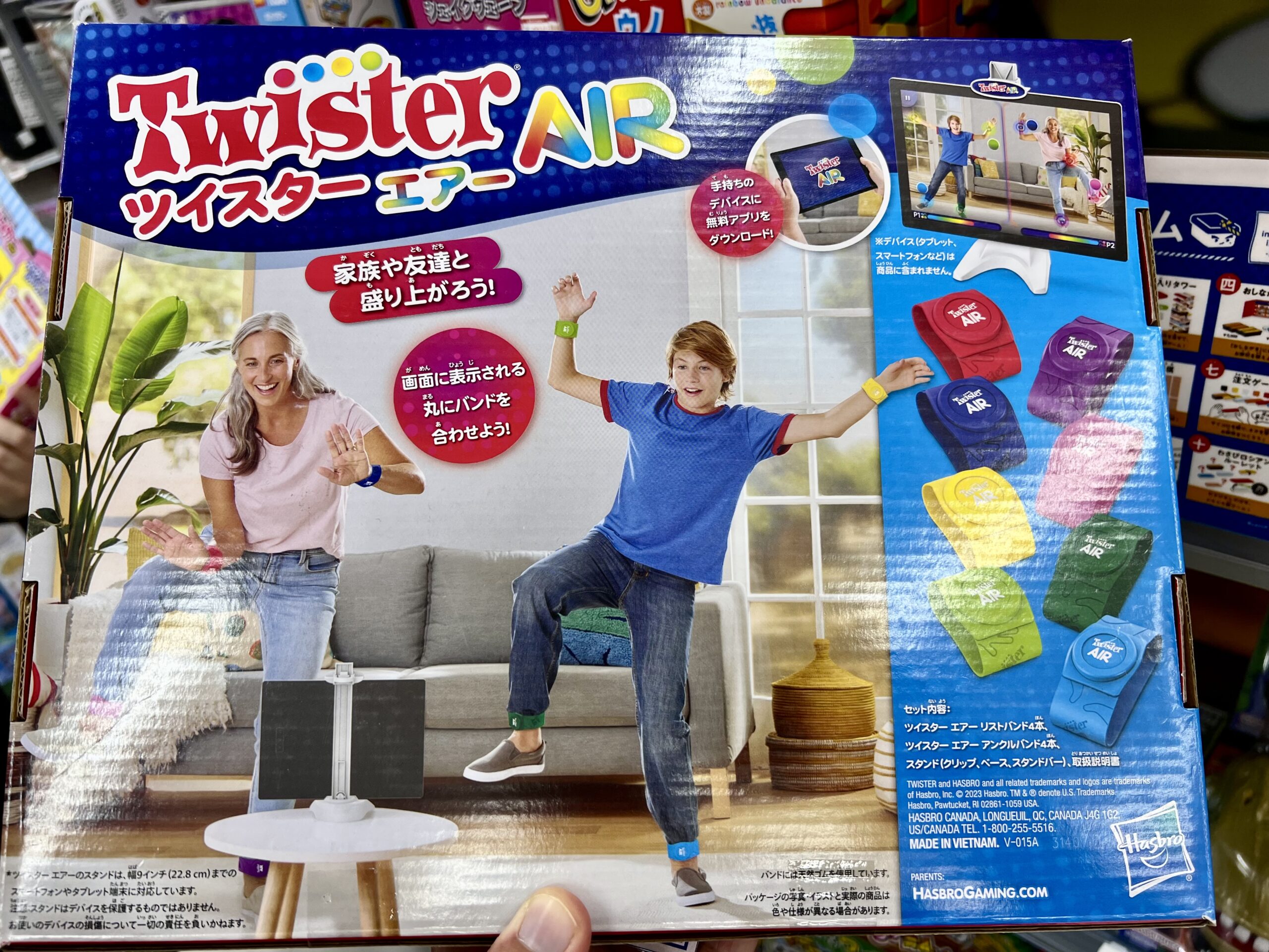 On peut y trouver le jeu Twister Air! Je ne sais pas si ça se trouve au Québec. Ça se joue devant tablette.