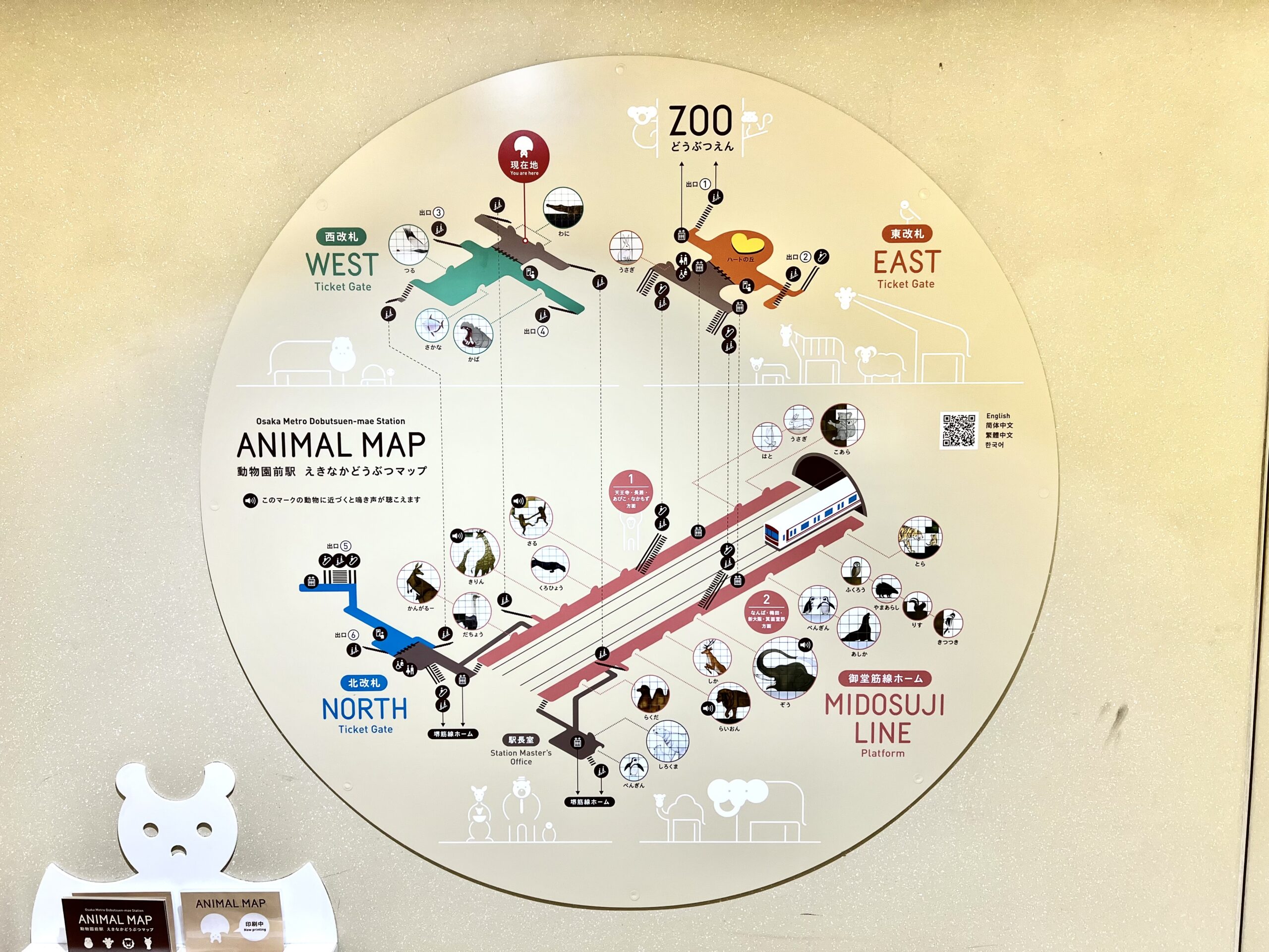 Pour se rendre au jardin botanique teamLab, on a pris un métro où il y avait des animaux sur les murs et un peu partout des sons. J’adore! Il y avait même la carte où on pouvait voir quel animal: