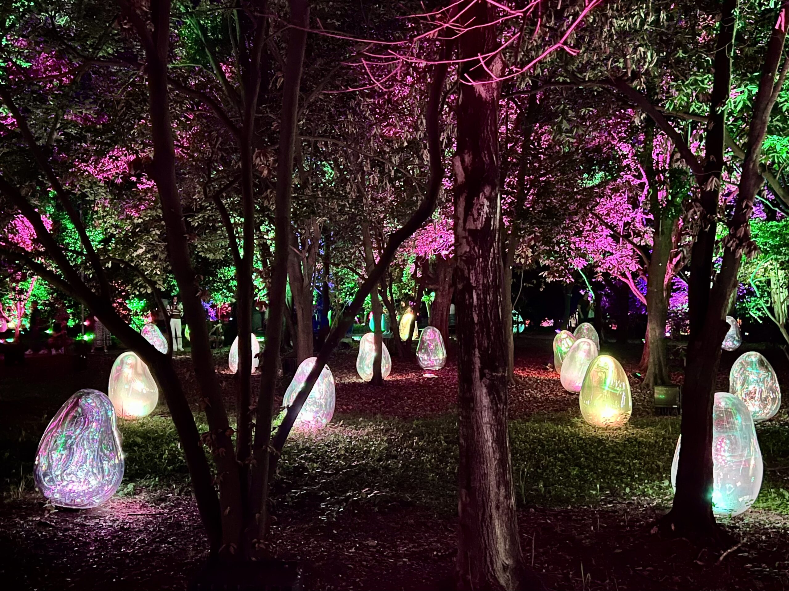 On n’avait rien de prévu, alors on a cherché un peu et Sarah a trouvé que teamLab (le même groupe qui a fait le musée d’art numérique) a un truc extérieur dans un jardin botanique. C’est 20$ par personne, on a réservé (c’est à 20h30).