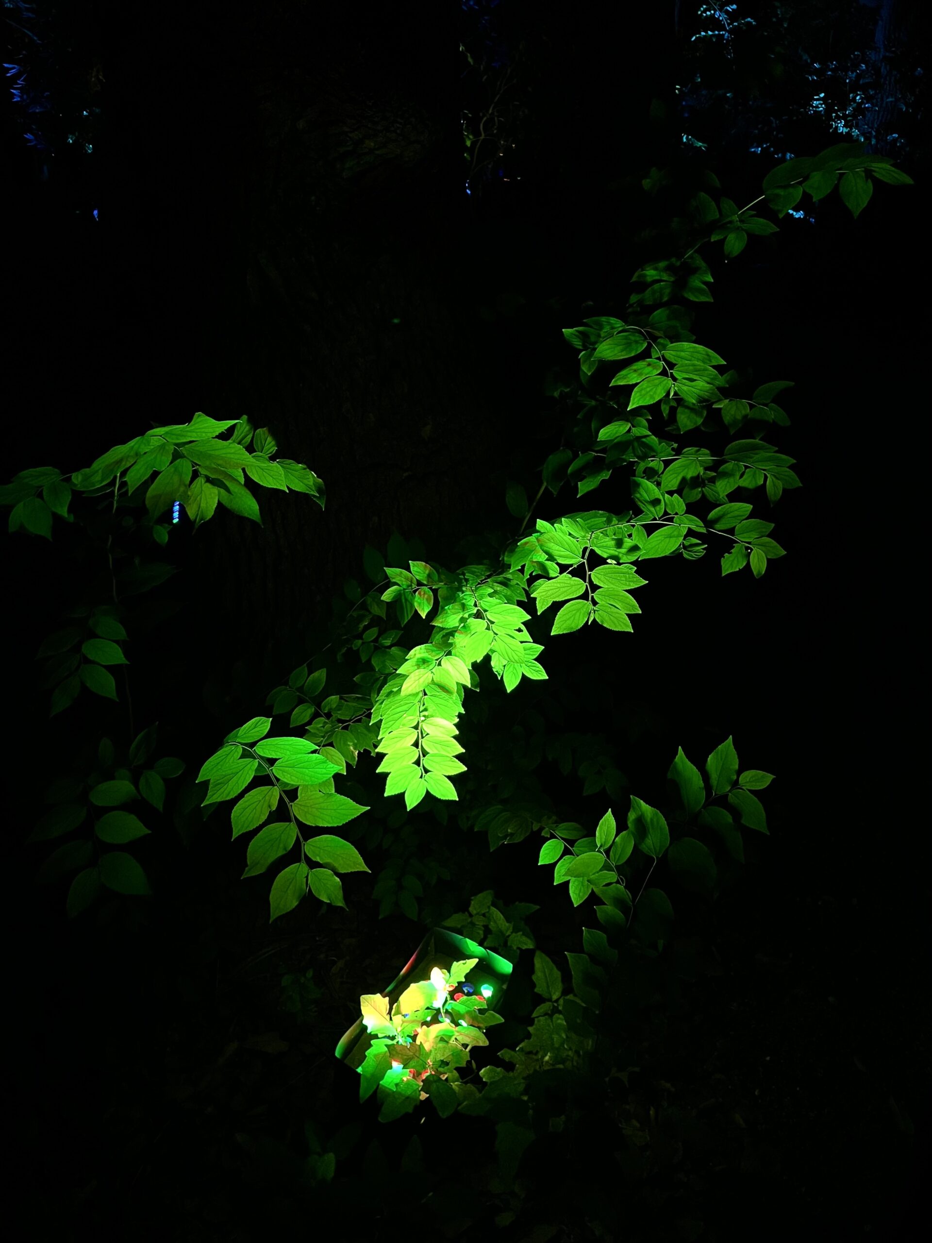 Des gens de lasers qui n’étaient pas des lasers, projetés sur des arbres: