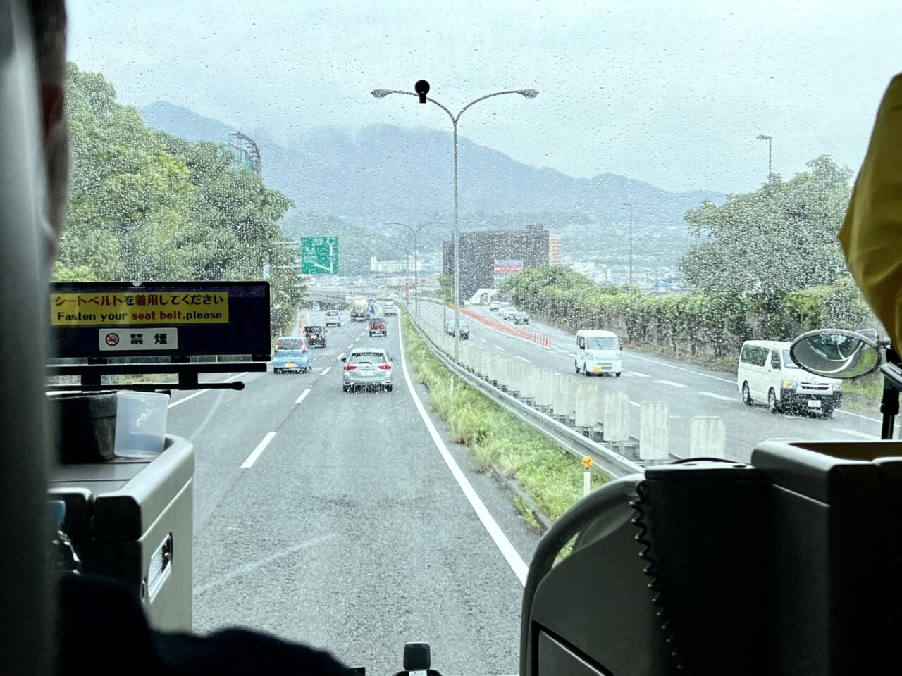 On a repris l’autobus avec son immense fenêtre toute en hauteur.