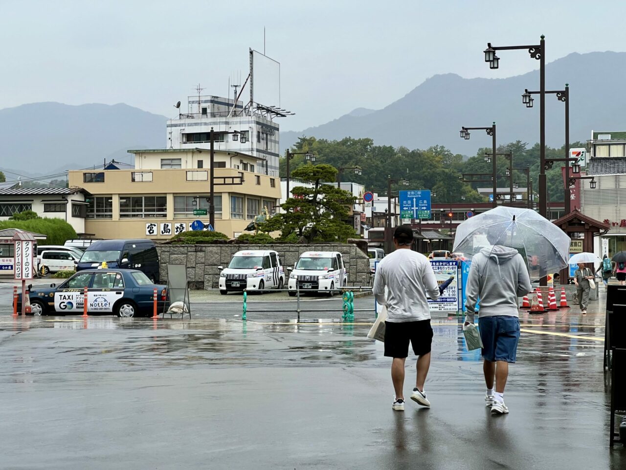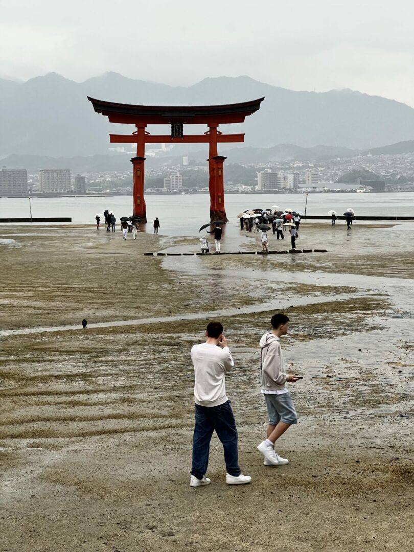 Il s’est mis à pleuvoir un peu plus et on s’en allait prendre le traversier pour l’île de Miyajima (pour me mêler encore plus, paraît que c’est Itsukushima).