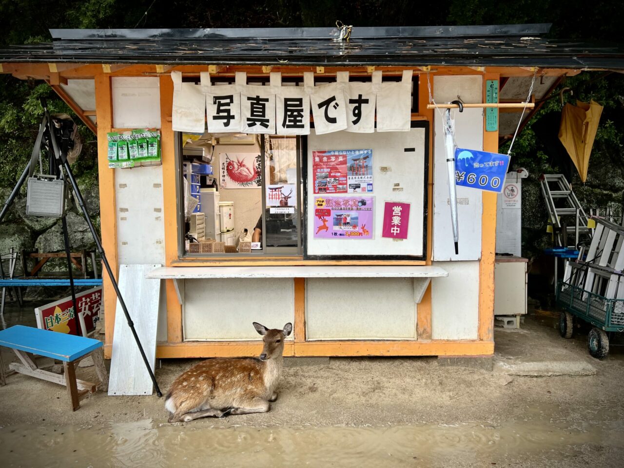 Il y a beaucoup de cerfs Sika sur l’île. À cause des touristes, ils sont fous comme des singes. Ils viennent voler tout ce qu’ils peuvent dans nos mains, etc.