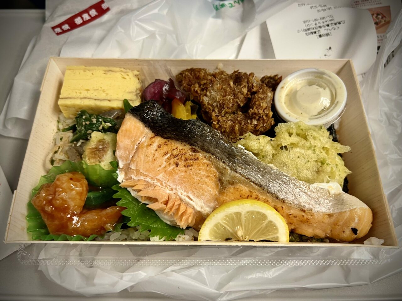 Et la journée a passé relativement vite. On a pris un bento box chaque pour le retour en train (le truc en haut c’était du poulet, je me suis fait avoir).