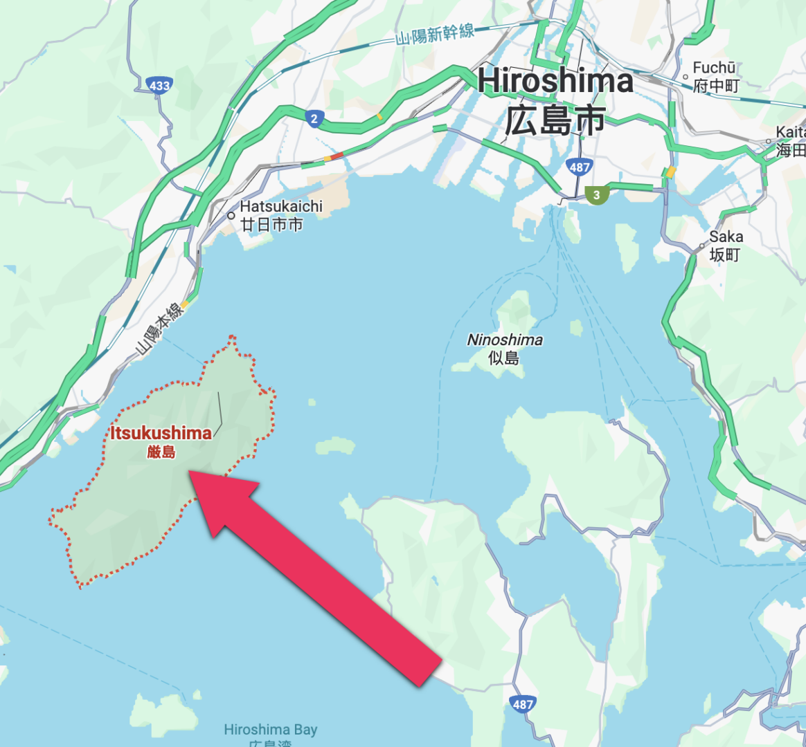 Ça c’est le torii flottant. C’est une des attractions les plus populaires du Japon (en rouge en bas à gauche). Ça fait aussi parti de la liste du patrimoine mondial de l’UNESCO.