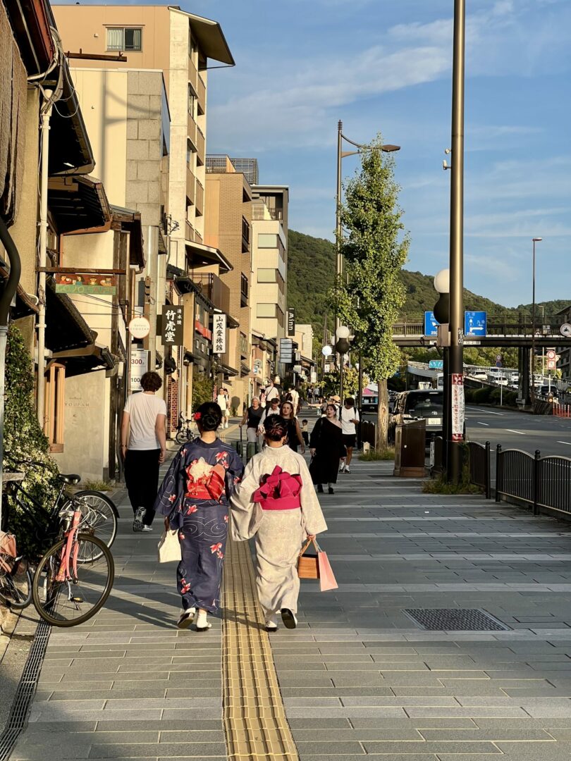 En route vers le temple, force est de constater que la location de kimonos est très répandue ici.